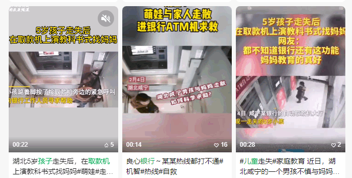 不僅如此,銀行ATM機的緊急求助功能,多次幫助走失兒童和困難人群,起到了社會救助的作用。很多網友表示被孩子上了一課