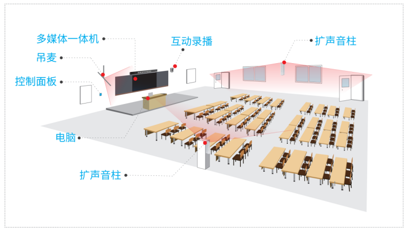在追求高效、自然互動的現代化教學中,傳統擴聲設備(如手持、領夾、鵝頸話筒)顯露出明顯弊端:教師需頻繁操作設備打斷教學節奏,學生發言需傳遞話筒抑制即興討論,共用話筒存在衛生隱患且維護繁瑣,固定拾音范圍導致聲音覆蓋不均,桌面設備雜亂分散注意力。為徹底解決這些問題,讓師生徹底擺脫設備束縛、回歸自然流暢的教學交流,教室吊麥無感擴聲方案應運而生。它旨在通過智能化、隱形化的設計,創造“開口即清晰、無需任何操作”的無感擴聲環境,顯著提升教學體驗與效率。