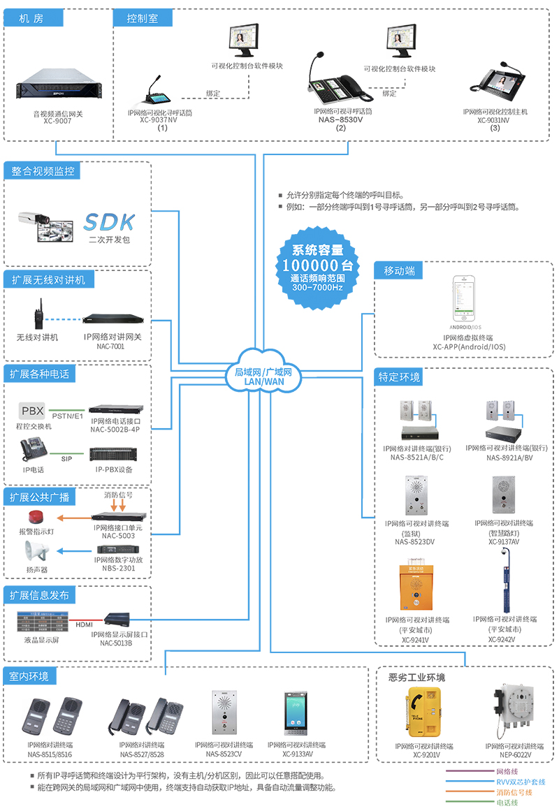 不僅僅對講,IP內(nèi)部通訊通過整合公共廣播,滿足點(diǎn)對點(diǎn)、點(diǎn)對多點(diǎn)的通信。隨著時(shí)代發(fā)展,內(nèi)部通訊系統(tǒng)在互聯(lián)網(wǎng)帶寬快速增長情況下,可視通話需求得以實(shí)現(xiàn)。世邦提供全新可視系列對講終端,達(dá)到面對面般溝通效果,同時(shí)還兼容標(biāo)準(zhǔn)SIP協(xié)議,與VoIP電話系統(tǒng)互聯(lián)互通,翻開了新的篇章。6、同時(shí)可用作報(bào)警系統(tǒng)和廣播系統(tǒng)(與世邦I(lǐng)P網(wǎng)絡(luò)公共廣播設(shè)備兼容);