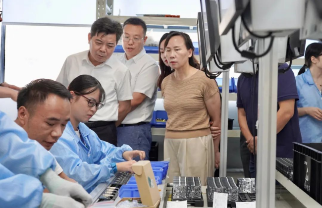 調研組一行在余求是先生的陪同下參觀了世邦通信公司展廳、研發實驗室、智能制造生產車間,了解了世邦通信發展經營狀況、產品體系、核心技術優勢以及行業應用情況。他們對于世邦通信堅持自主創新研發、聚焦差異化發展給予高度肯定和贊賞。