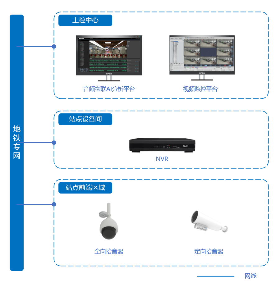 我們針對軌道交通行業發展現狀,專為軌道交通行業場景定制音頻監控系統方案。方案覆蓋站點出入口、服務中心、安檢口、主要通道、等候區等重要場景的音頻監控,具備網絡化管理、實時監聽、音頻回放等功能,實現與視頻監控互聯互控、共享共用,形成基本覆蓋軌道交通站點治安防范區域的全天候音視頻監控網絡,快速提升軌道交通治安監控、管理的能力與水平,創造安全、和諧的乘車環境。