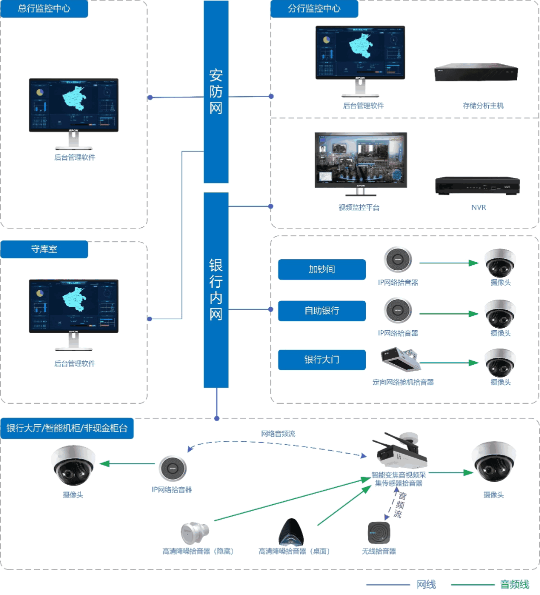 將音頻監控系統集成化,網絡化,智能化已是目前銀行業安保工作發展的趨勢和需要。