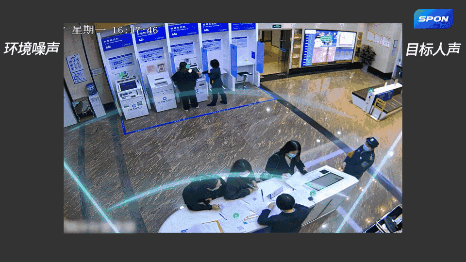 現有問題:低柜非現金業務是重要的業務辦理區域,現有的音視頻監控通常是“柜臺、攝像頭、拾音器”一一對應,非現金業務區臨近營業廳人流量較大因此環境噪音、廣播叫號聲、不同業務辦理間的干擾聲,都是影響低柜區域拾音質量的因素。