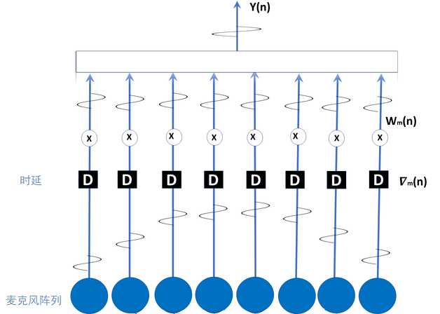 假設麥克風的數量為M,第i個麥克風接收到的信號為,對進行時延對齊后,累加可得