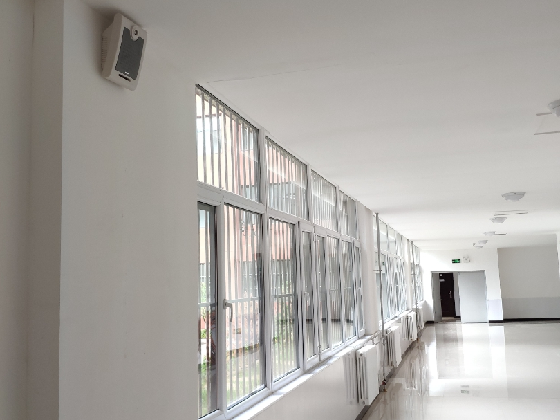 辦公樓作為教師的休息和備課場所,建議在公共走廊設置揚聲器,保證能接收廣播信息,做到師生同步。整棟辦公樓公共走廊設為一個廣播分區,采用IP網絡功放+壁掛音箱的部署方式,如有吊頂可優先選擇天花喇叭,安裝效果更加美觀。壁掛音箱部署間隔約15~20米/只。