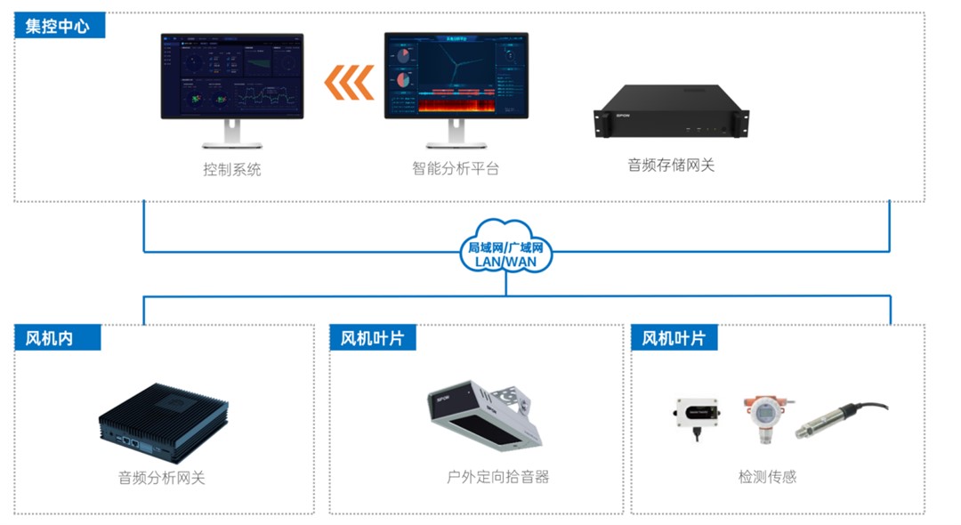 世邦通信專為風(fēng)電行業(yè)定制的葉片預(yù)測性維護解決方案,通過監(jiān)聽葉片氣動噪聲的音頻采集設(shè)備和基于AI深度學(xué)習(xí)的音頻特征識別技術(shù),實時把握葉片運行狀態(tài)、健康狀況等關(guān)鍵信息。